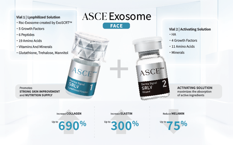 ASCE Exosome (Face) is an advanced regenerative cosmetic solution formulated using RSC-Exosome, a high-purity bioactive exosome complex created through ExoSCRT™ a patented, next-generation purification technology for precise exosome isolation.